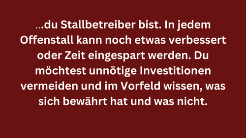 Du kannst ganz einfach innerhalb der nächsten 24 Stunden entweder deinen bestehenden Offenstall optimiert oder deinen neuen Offenstall fertig geplant haben.