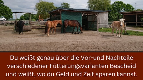 ✔️ dafür sorgen, dass dein Pferd genug ans Heu kommt und sich auch mal entspannt zurückziehen kann.