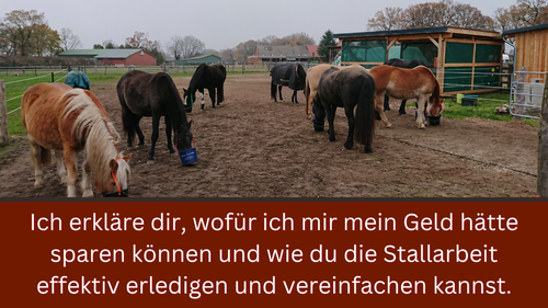 Inzwischen habe ich für uns die perfekte Lösung gefunden. Die Pferde sind super entspannt und zufrieden und ich kann die tägliche Arbeit so effektiv wie möglich erledigen.
